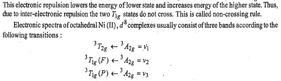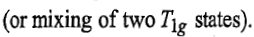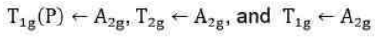 Now there will be two holes one in t2g and one in eg orbitals. Corresponding to this electronic configuration, there are two triply degenerate states. The lower energy state will arise when two holes occupy the orbitals as far apart as possible. This state is represented as