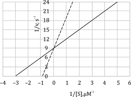 Kₛ = 400 μM, Kₘ = 408 μM.
