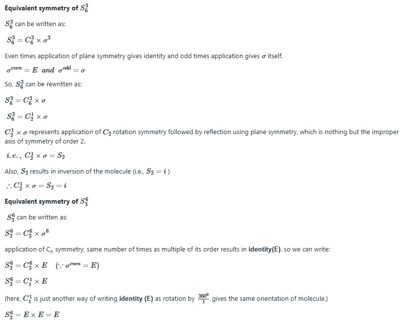 Sn represents the improper axis of symmetry which includes application of rotation followed by reflection or vice-versa.