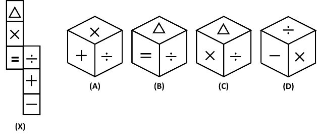 Option C matches all the rules of adjacency and opposite faces in the unfolded diagram (X).