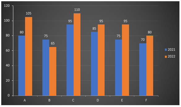 A = 80, B = 75, C = 95, D = 85, E=75, F=70