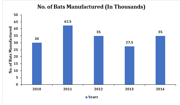The following graph shows the number (in hundreds) of bats manufactured by a factory in Meerut over the period of 2010 to 2014.