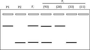 Option d: If an F₂ progeny which does not show either of the DNA markers is crossed to a P1 individual, the obtained progeny will have two types of individual, one which shows a band and the other where no band is observed.