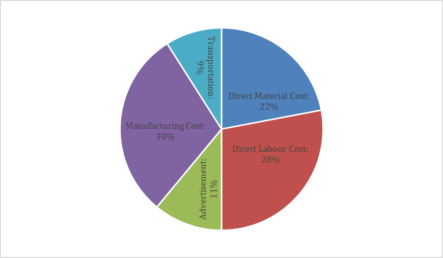 Direct Material Cost is 22% of the cost price.