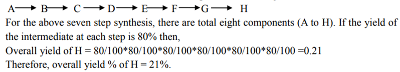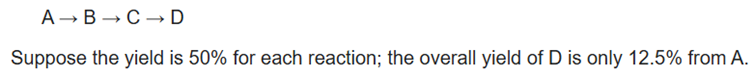 In linear synthesis the overall yield quickly drops with each reaction step: