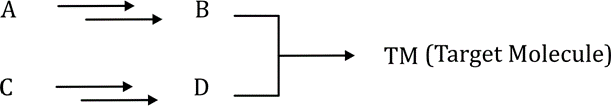 In linear synthesis, the target molecule (TM) is synthesized through a series of linear transformations. The TM is assembled in a stepwise manner. E.g.,