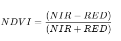 - Higher NDVI values (closer to +1) indicate vegetation.