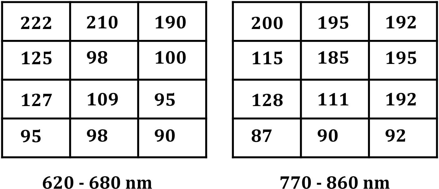 - RED = 620–680 nm band values