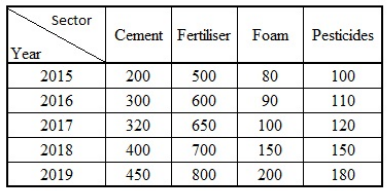 The following table shows CFC emissions (in million metric tons) from various sectors for an industry for a period of 5 years. Based on the table answer the question given below.