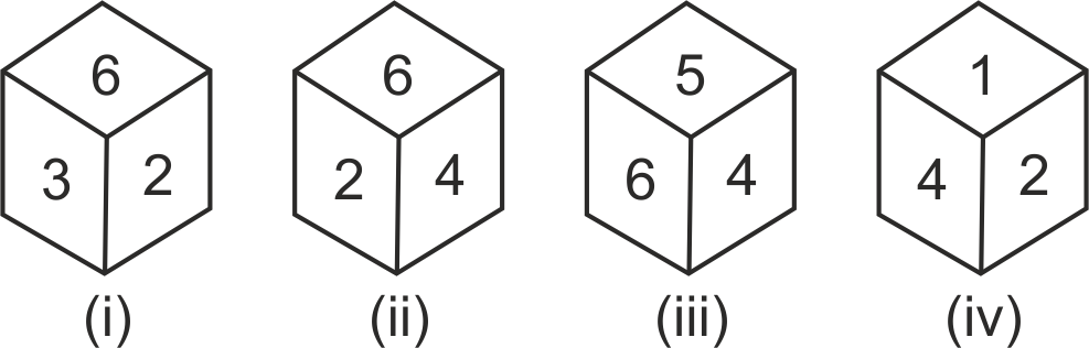 the adjacent faces of 6 show = 2, 3, 4, 5