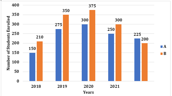 Total students enrolled in Institute B in 2019, 2020, and 2022 = 350 + 375 + 200