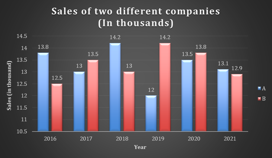 Total bikes sold by company A in 2016 and 2020 = 13.8 +13.5 = 27.3