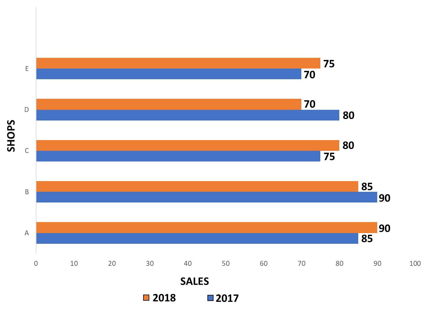 Sales of D for both the years = 70 + 80 = 150