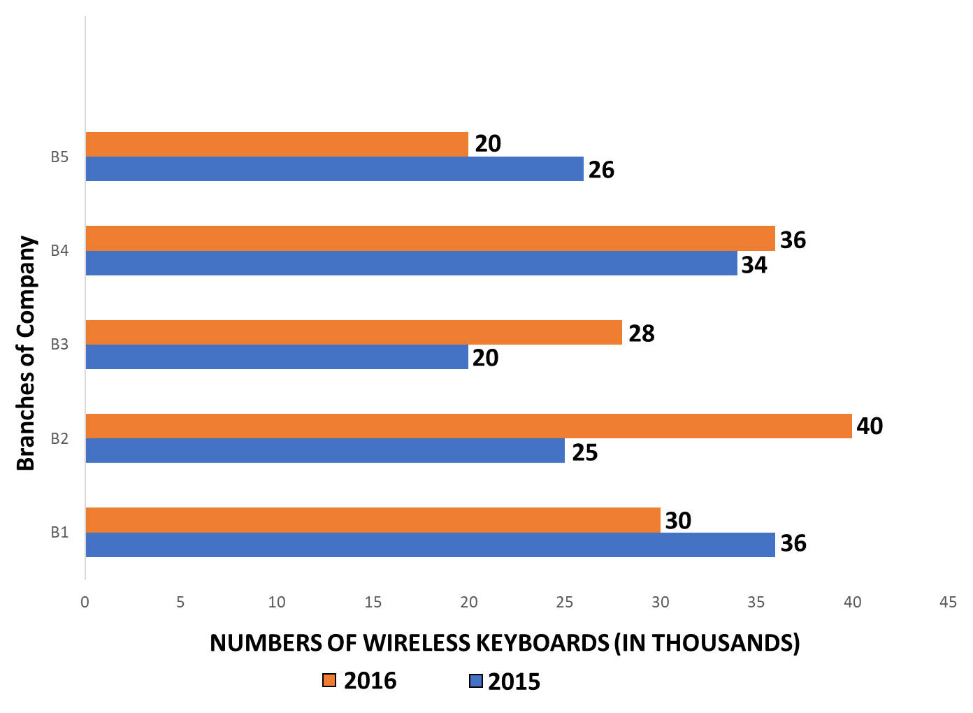 Number of wireless keyboards of branch B1 in (2015) = Number of wireless keyboards of branch B4 in (2016)