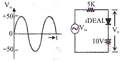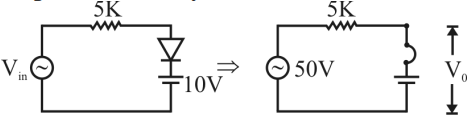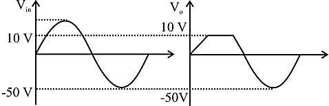 The given circuit behaves as a positive clipper with its negative peak at - 50V.