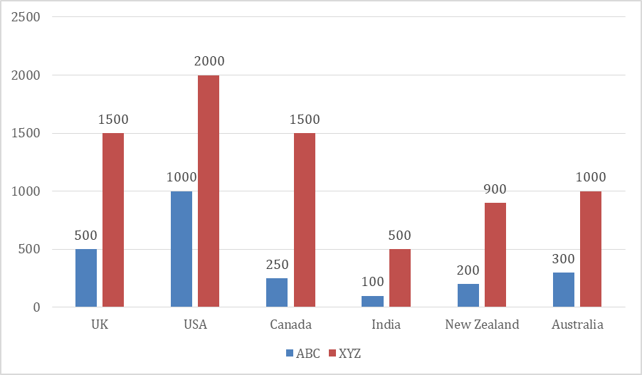 New Zealand total sales = 200 (ABC) + 900 (XYZ) = 1100