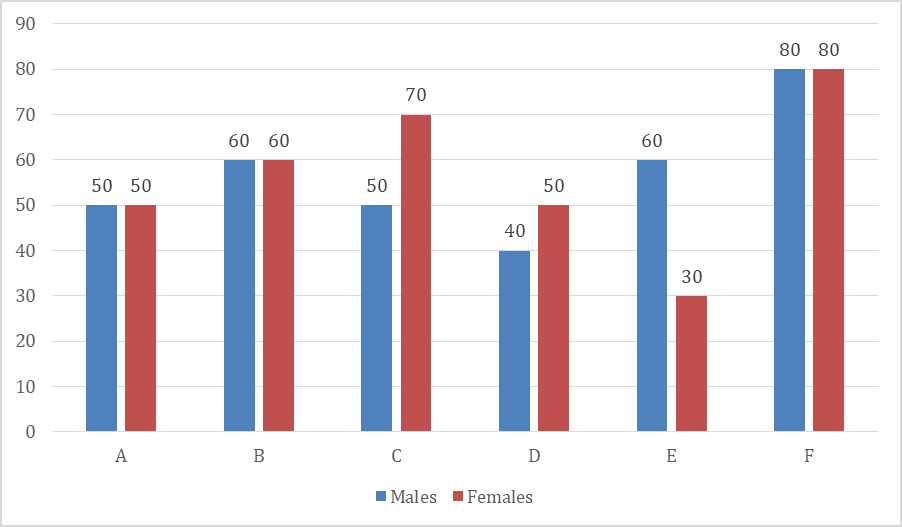 City D: Males = 40, Females = 50