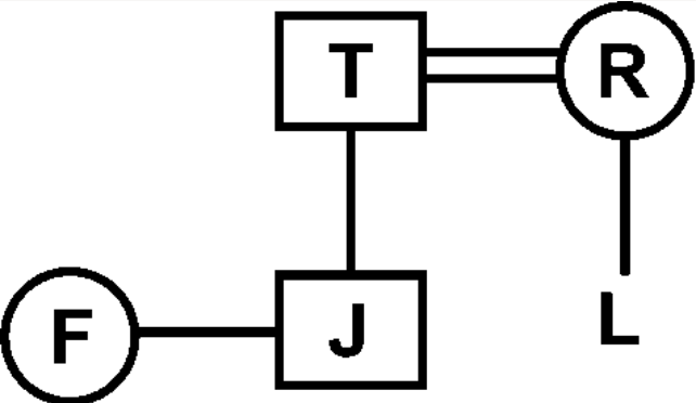 If 'F # J@T $ R* L', then how is 'F' related to 'R'?