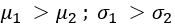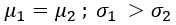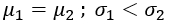 The correct option is (d): μ1=μ2;σ1<σ2