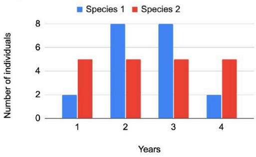 Thus, the standard deviation for Species 2 is greater than for Species 1: