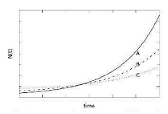 Since the growth rate r dictates the steepness of the exponential curve, the following relationship can be