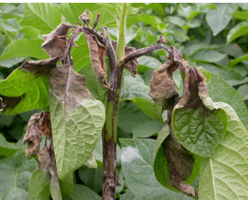 Causal organism: Phytophthora infestans (Oomycete pathogen).