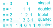 If 'n' equivalents of protons interact or couple with the protons on an adjacent carbon atom, the resonance peak splits into 'n+1' signals.