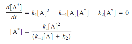 Because A* is an intermediate species, the relationship between [A*] and [A] is obtained by writing the differential rate expression for [A*] and applying the steady-state approximation:
