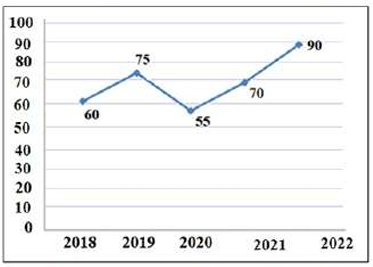 The line graph given below shows the sales of a company from the year 2018 to 2022. Read the graph and answer the given question. Fi