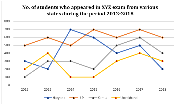 Total number of students who appeared in the XYZ exam in the year 2012 = (500 + 300 + 200 + 100)