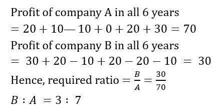 The line graphs show the profit (in lakh rupees), for 6 years of two companies A and B. the ratio of the cumulative profits for these 6 years of comp