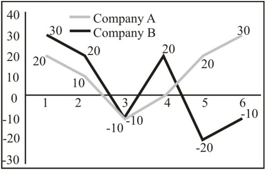 The line graphs show the profit (in lakh rupees), for 6 years of two companies A and B.