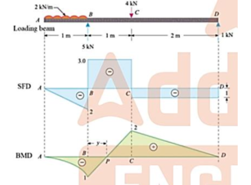 The loading beam. shear force and bending moment diagrams are given below.