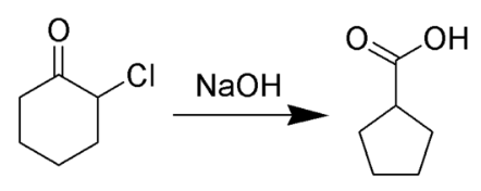 The Favorskii rearrangement is principally a rearrangement of cyclopropanones and α-halo ketones that leads to carboxylic acid derivatives. In the case of cyclic α-halo ketones, the Favorskii rearrangement constitutes a ring contraction. This rearrangement takes place in the presence of a base, sometimes hydroxide, to yield a carboxylic acid, but usually either an alkoxide base or an amine to yield an ester or an amide, respectively. α,α'-dihaloketones eliminate HX under the reaction conditions to give α,β-unsaturated carbonyl compounds.