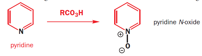 Pyridine can be oxidized to pyridine N-oxide with reagents such as m-CPBA or just H2O2 in acetic acid. These N-oxides are stable dipolar species with the electrons on oxygen delocalized round the pyridine ring, raising the HOMO of the molecule.