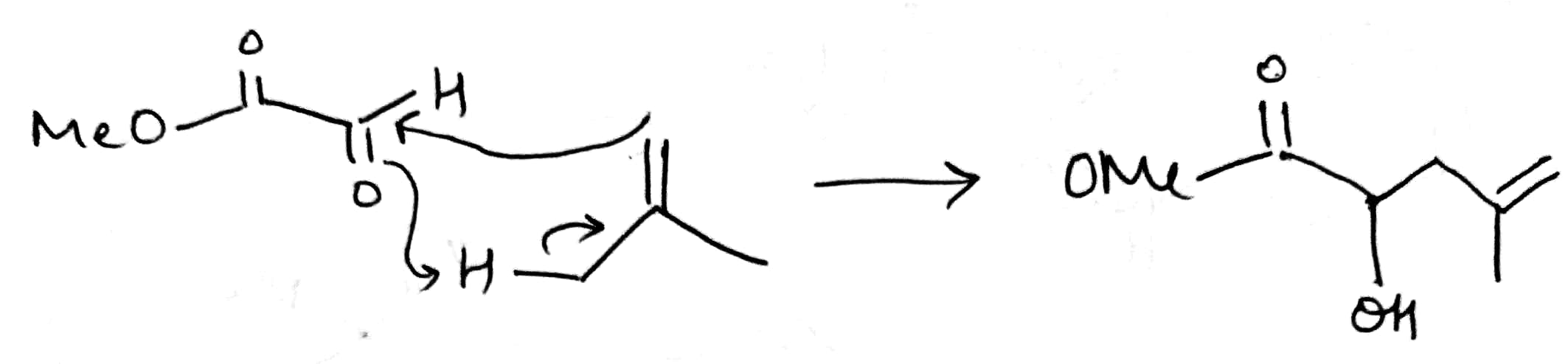 The ene reaction involves the thermal reaction of an alkene bearing an allylic hydrogen atom (the ene component) with a compound containing an activated multiple bond (the enophile). A new sigma-bond is formed between the unsaturated centres with migration of the allylic hydrogen atom to the other terminus of the enophile multiple bond.