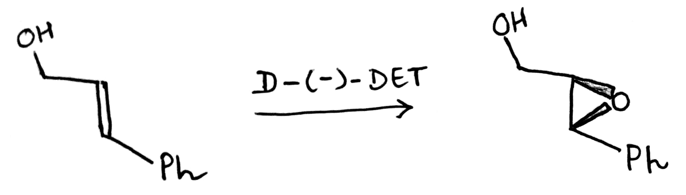 In case of (-)-DET, when the OH group in the allylic alcohol is on the right side then epoxide will form from below the plane(dash). On the other hand, when the OH group in the allylic alcohol is on the left side then epoxide will form from above the plane(wedge).