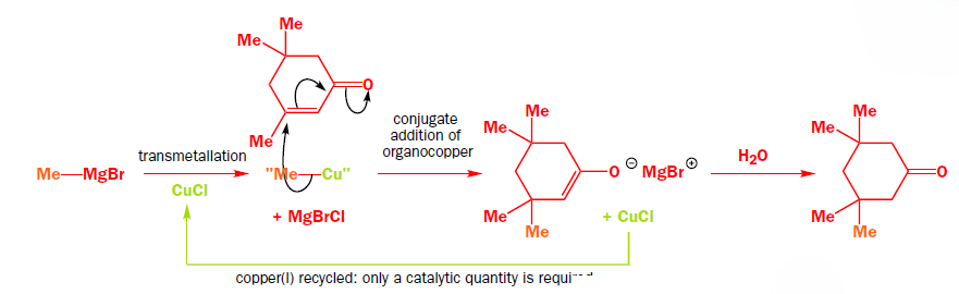 Addition of organocopper reagents to α,β-unsaturated carbonyl compounds (enones and conjugated esters) generates enolates with concomitant introduction of an organic group at the β-position.