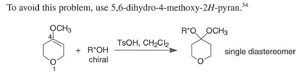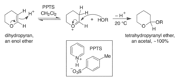 The THP group is a widely used protecting group; it is readily introduced by reaction of the enol ether dihydropyran with an alcohol in the presence of an acid catalyst, such as TsOH,