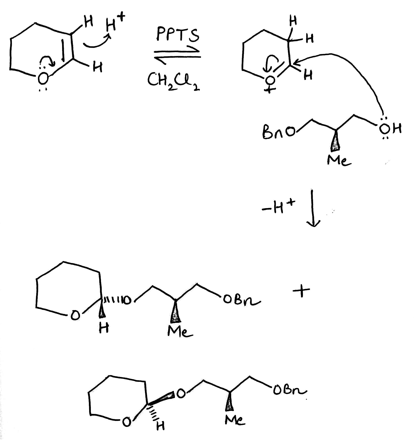 Protection of chiral alcohols as THP ethers leads to mixtures of diastereoisomers.