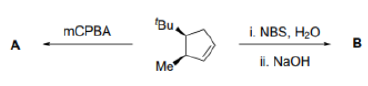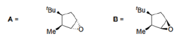 In the product A, the epoxide will be formed from the less hindered side (below the plane).