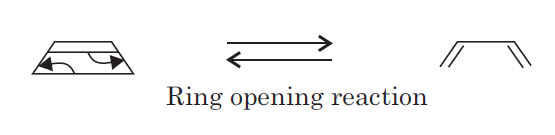 The most common example of the ring opening reaction is the conversion of cyclobutene to 1, 3-butadiene.