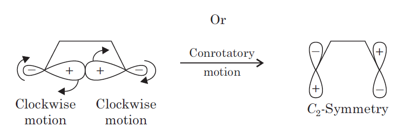 This σ ( sigma) bond may break in two ways. First, the two atomic orbital components of the σ ( sigma) bond may both rotate in the same direction, clockwise or counter-clockwise. This process is known as conrotatory motion.