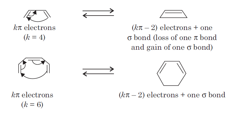 In electrocyclic reactions either a ring is formed with the generation of a new σ bond and the loss of a π bond ( i.e., gain of one σ bond and loss of one π bond) or ring is broken with the loss of one σ bond and gain of one π bond.