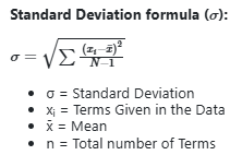 In statistics, the standard deviation is a measure of the amount of variation of the values of a variable about its mean. A low standard deviation indicates that the values tend to be close to the mean (also called the expected value) of the set, while a high standard deviation indicates that the values are spread out over a wider range. The standard deviation is commonly used in the determination of what constitutes an outlier and what does not. Standard deviation may be abbreviated SD or std dev, and is most commonly represented in mathematical texts and equations by the lowercase Greek letter σ (sigma), for the population standard deviation, or the Latin letter s, for the sample standard deviation.