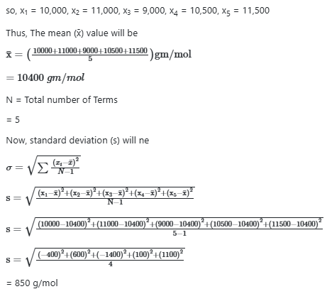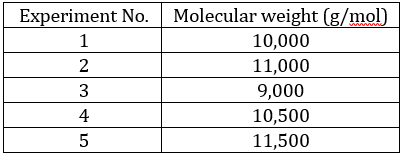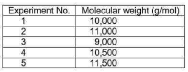 The molecular weight of polyethene determined in five individual experiments is given below: