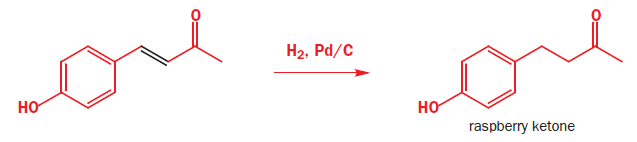 It should not surprise you that regioselective reduction of the C=C double bond alone is best done using catalytic hydrogenation as the C=C bond is weaker than the C=O bond. The flavouring compound known as ‘raspberry ketone’ is made by this method.