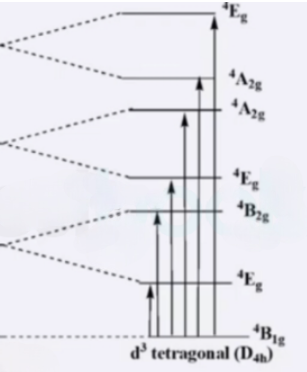 trans-[Cr(en)2F2]+: It has D4h symmetry. Six transitions are possible.