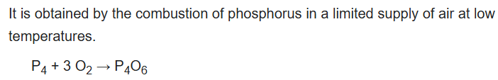 Phosphorus trioxide is the chemical compound with the molecular formula P4O6. Although the molecular formula suggests the name tetraphosphorus hexoxide, the name phosphorus trioxide preceded the knowledge of the compound's molecular structure, and its usage continues today. This colorless solid is structurally related to adamantane. It is formally the anhydride of phosphorous acid, H3PO3, but cannot be obtained by the dehydration of the acid. A white solid that melts at room temperature, it is waxy, crystalline and highly toxic, with garlic odor.