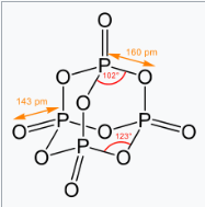 Phosphorus pentoxide is a chemical compound with molecular formula P4O10 (with its common name derived from its empirical formula, P2O5). This white crystalline solid is the anhydride of phosphoric acid. It is a powerful desiccant and dehydrating agent.
